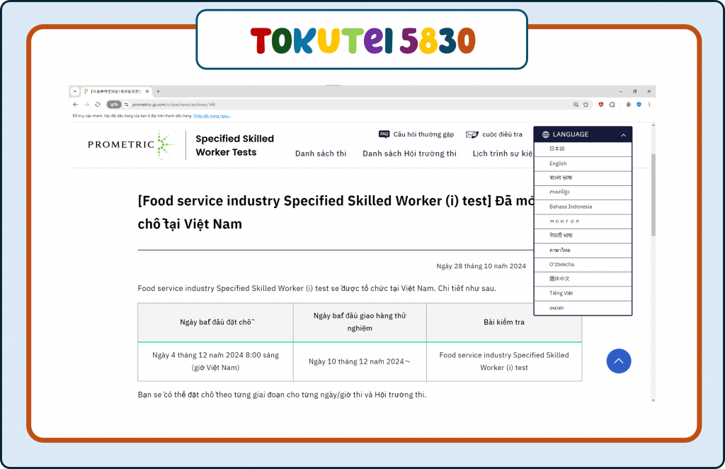 Kỳ thi Tokutei Nhà Hàng chính thức được tổ chức tại Việt Nam!